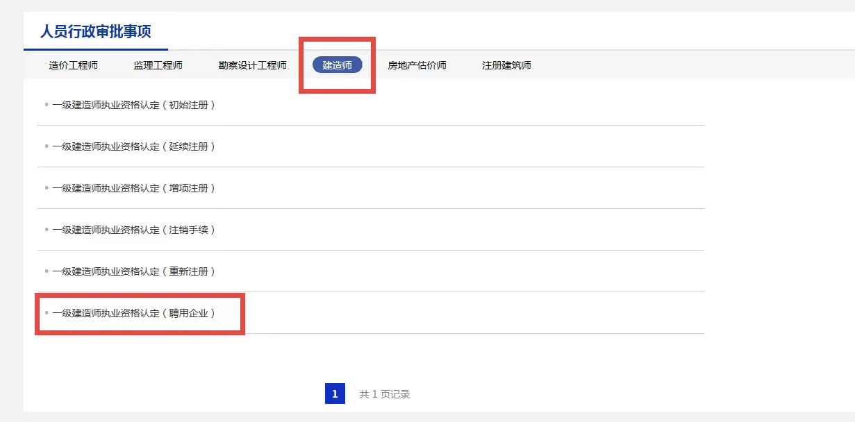 登录法定代表人账号和经办人账号后,回到住房和城乡建设部政务服务门户网站首页,在网页下部,选择“建造师”,选择“一级建造师执业资格认定(聘用企业)”,进入一建平台进行一建人员的注销注册确认操作。